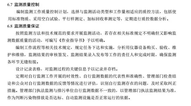 覆蓋全過程。按照排污單位開展監(jiān)測活動的整個過程,從制定方案、設置和維護監(jiān)測設施、開展監(jiān)測、做好監(jiān)測質量保證與質量控制、記錄和保存監(jiān)測數據的全過程各環(huán)節(jié)進行考慮。