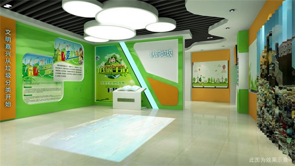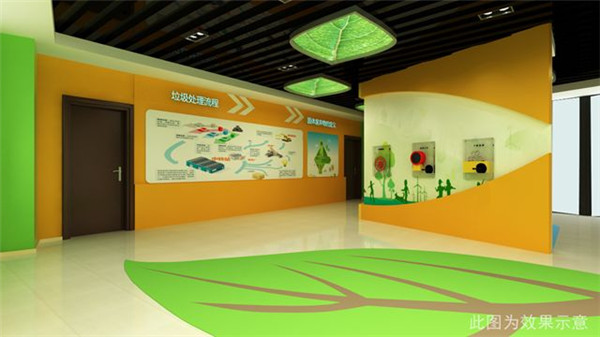 為了更好地寓教于樂,該基地在規(guī)劃設(shè)計(jì)上頗為用心。序廳里,通過弧形有機(jī)玻璃主題墻展示城市垃圾的藝術(shù)造型,將垃圾圍城的危機(jī)感,潛移默化傳遞給每一位參觀者。