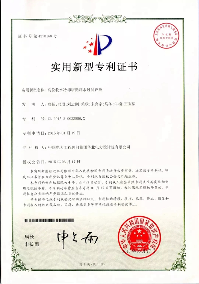 專家組在評審意見中高度評價了華北院取得的成果,一致認(rèn)為:“該項目技術(shù)成果達(dá)到國內(nèi)領(lǐng)先水平,高位收水冷卻塔循環(huán)水過濾設(shè)施達(dá)到國際先進(jìn)水平”“建議盡快推廣應(yīng)用”。