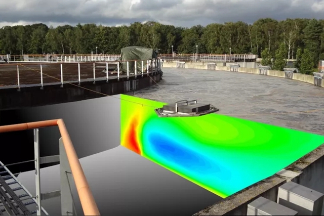 CFD是Computational Fluid Dynamics的英文縮寫,即計(jì)算流體動(dòng)力學(xué)。CFD是通過(guò)計(jì)算機(jī)對(duì)包括流體流動(dòng)和熱傳導(dǎo)等物理現(xiàn)象的系統(tǒng)進(jìn)行的分析。在污水廠,了解系統(tǒng)的水力特性對(duì)污水處理效率有重要影響,例如污水倉(cāng)可能會(huì)遇到因?yàn)閿嚢柙O(shè)備選擇和布局不合理導(dǎo)致池內(nèi)死水區(qū)和污泥沉淀等問(wèn)題。對(duì)工藝優(yōu)化和改造而言,中試實(shí)驗(yàn)不便宜,而且你無(wú)法找到10個(gè)真正的系統(tǒng)來(lái)測(cè)試,但你可以通過(guò)CFD建模,對(duì)不同運(yùn)行條件進(jìn)行虛擬仿真測(cè)試,提高測(cè)試速度和降低成本。可視化的3D模型可以幫助運(yùn)行人員更好地了解污水廠的運(yùn)行概況。如下圖所示,這些CFD模型,可以將溶解氧、總氮濃度等參數(shù)可視化。基于這些分析結(jié)果,管理人員可以制定相應(yīng)措施,減少不必要的曝氣量,提高能效。