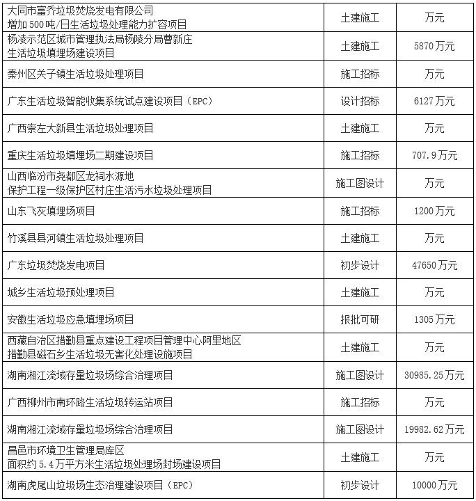 2019年1月份全國擬在建垃圾處理項(xiàng)目,詳情如下: