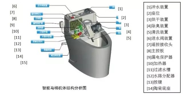 通過下面的圖我們可以初步了解一下智能馬桶的機體構(gòu)成。
