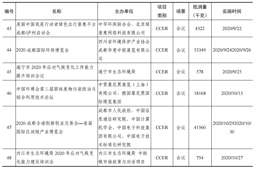 目前,四川已擁有碳中和會(huì)議、展覽、大數(shù)據(jù)中心、園區(qū)、景區(qū)、音樂會(huì)、婚禮等場(chǎng)景,雅安大數(shù)據(jù)產(chǎn)業(yè)園建成全國首個(gè)碳中和國家綠色數(shù)據(jù)中心,青城山—都江堰風(fēng)景名勝區(qū)成為國內(nèi)首個(gè)碳中和景區(qū)。從集中度看,溫室氣體排放抵消量最大的10個(gè)活動(dòng)(都江堰風(fēng)景名勝區(qū)、第二屆國際城市可持續(xù)發(fā)展高層論壇、青城山風(fēng)景名勝區(qū)、全國機(jī)關(guān)事務(wù)文化建設(shè)工作研討會(huì)、2020成都國際環(huán)保博覽會(huì)、四川省林業(yè)碳匯國際研討會(huì)、2019天府金融論壇主論壇及發(fā)布會(huì)、2020成都全球創(chuàng)新創(chuàng)業(yè)交易會(huì)—首屆國際區(qū)塊鏈產(chǎn)業(yè)博覽會(huì)、四川省鐵路產(chǎn)業(yè)投資集團(tuán)公司資產(chǎn)經(jīng)營(yíng)管理人員專題培訓(xùn)班、四川省用能權(quán)交易開市活動(dòng)及業(yè)務(wù)培訓(xùn)會(huì)),共抵消溫室氣體2761.3噸,約占全部抵消量的57.2%;成都市碳中和活動(dòng)超過60場(chǎng)次,最為集中,其次是遂寧市。從活動(dòng)層次看,多以企事業(yè)單位活動(dòng)為主;地方政府組織或參與的活動(dòng)超過34場(chǎng)次;國際會(huì)議共有4場(chǎng)次,包括第二屆國際城市可持續(xù)發(fā)展高層論壇、2020成都國際環(huán)保博覽會(huì)、四川省林業(yè)碳匯國際研討會(huì)、2020成都全球創(chuàng)新創(chuàng)業(yè)交易會(huì)—首屆國際區(qū)塊鏈產(chǎn)業(yè)博覽會(huì)、第三屆國際城市可持續(xù)發(fā)展高層論壇。環(huán)境類活動(dòng)碳中和超過40場(chǎng)次,金融機(jī)構(gòu)參與活動(dòng)也相對(duì)較多,凸顯了金融領(lǐng)域和環(huán)境領(lǐng)域的理念引領(lǐng)作用。