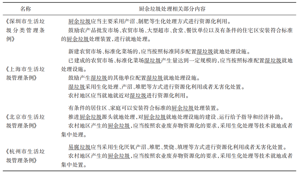表3 中國部分省市地區(qū)廚余垃圾處理相關(guān)政策