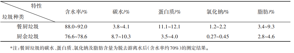 表2 餐廚垃圾和廚余垃圾物化特性比較