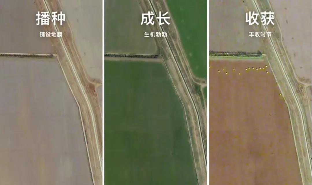 衛(wèi)星視角記錄下新疆棉田從棉花播種、成長,再到收獲各個(gè)時(shí)期的狀態(tài)。