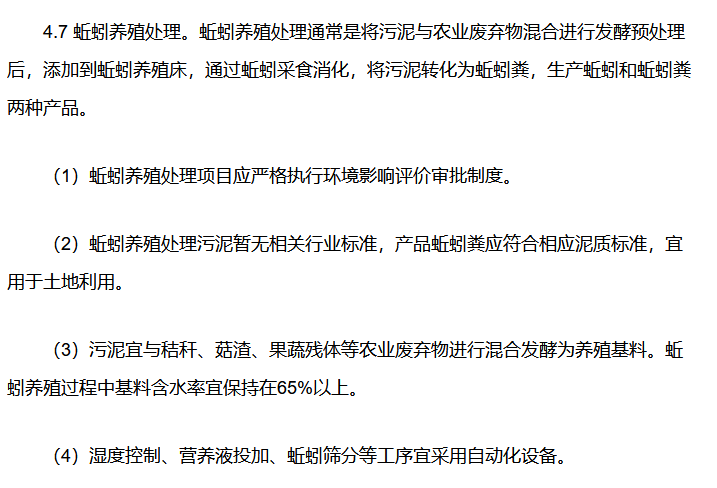 事實(shí)上,在去年9月印發(fā)的《四川省城鎮(zhèn)生活污水處理廠污泥處理處置技術(shù)指引(試行)》(以下簡(jiǎn)稱“指引”)中,蚯蚓養(yǎng)殖處理是作為一個(gè)重要的污泥處理單元技術(shù)路線而存在的,指引中對(duì)蚯蚓養(yǎng)殖處理的概念和注意事項(xiàng)做出了詳細(xì)闡述。