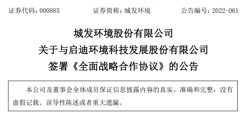 據(jù)公告顯示,終止本次重大資產(chǎn)重組的原因是城發(fā)環(huán)境自籌劃本次重大資產(chǎn)重組事項(xiàng)以來,嚴(yán)格按照相關(guān)法律法規(guī)的要求,與交易對方及其他相關(guān)雙方持續(xù)進(jìn)行磋商與研討,并根據(jù)磋商結(jié)果積極推進(jìn)相關(guān)盡職調(diào)查、審計(jì)、信息披露、內(nèi)部決策等工作。鑒于本次重大重組方案論證歷時較長,相關(guān)市場環(huán)境較本次交易籌劃之初發(fā)生較大變化。經(jīng)審慎研究分析,為切實(shí)維護(hù)城發(fā)環(huán)境及全體股東利益,經(jīng)與啟迪環(huán)境協(xié)商,雙方?jīng)Q定終止本次重大資產(chǎn)重組事項(xiàng)。根據(jù)法律法規(guī)及公司章程規(guī)定,經(jīng)雙方充分溝通及友好協(xié)商,城發(fā)環(huán)境董事會經(jīng)審慎研究后,依法履行了相關(guān)審議程序,終止本次重大資產(chǎn)重組。同時,另一則公告顯示,城發(fā)環(huán)境與啟迪環(huán)境簽署的戰(zhàn)略框架性協(xié)議。合作內(nèi)容、合作機(jī)制與合作期限等事項(xiàng)的具體實(shí)施尚存在不確定性,具體的項(xiàng)目合作協(xié)議或項(xiàng)目開展方案尚需雙方進(jìn)一步協(xié)商確定。公告顯示,基于城發(fā)環(huán)境在環(huán)保項(xiàng)目建設(shè)、區(qū)域市場拓展、環(huán)保技術(shù)研發(fā)及人員交流等方面與啟迪環(huán)境已經(jīng)開展了深入、全面的合作,具備良好的合作基礎(chǔ),為延續(xù)雙方友好合作關(guān)系、充分發(fā)揮雙方在環(huán)保、能源領(lǐng)域的發(fā)展優(yōu)勢,公司與啟迪環(huán)境共同簽署了《全面戰(zhàn)略合作協(xié)議》,以進(jìn)一步推動雙方交流合作。