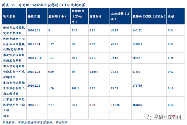 我們采用垃圾處理量與所獲得CCER噸數(shù)之比作為統(tǒng)計口徑,從簽發(fā)和備案項目中選取了較為典型的垃圾焚燒項目計算平均值,根據(jù)測算垃圾焚燒企業(yè)每處理一噸垃圾,平均獲得0.287噸CCER,在假設CCER價格為20元/噸的情況下,噸垃圾增收約為6元。