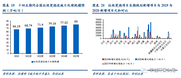垃圾焚燒設施日處理規(guī)模超預期。根據(jù)2020城鄉(xiāng)統(tǒng)計年鑒的數(shù)據(jù),截至2020年底,我國垃圾焚燒設施的日處理規(guī)模(城鎮(zhèn)+縣城)合計已達到66.19萬噸/日,超額完成了十三五規(guī)劃58萬噸/日的目標。