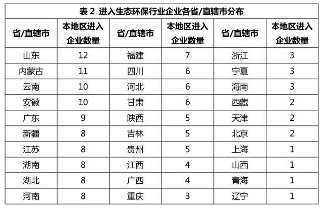 從各省生態(tài)環(huán)保細分領(lǐng)域優(yōu)勢企業(yè)分布來看,山東省所涉足的環(huán)保細分領(lǐng)域是最全的,各細分領(lǐng)域中的佼佼者也較為多樣,并無單個企業(yè)獨占鰲頭的現(xiàn)象,說明山東省生態(tài)環(huán)保行業(yè)的競爭性和機會都較大。