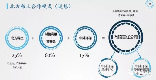 以北方稀土環(huán)保治理為例來分析,2018年新增的環(huán)保需求為:2000方/天氯化銨廢水處理零排放項(xiàng)目、約10萬噸/年的低放射性固體廢棄物處置、約4000噸/年的普通固體廢棄物處置,預(yù)計(jì)總投資額達(dá)1個億。目前,北方稀土環(huán)保產(chǎn)業(yè)已投入6.7億,每年運(yùn)營費(fèi)用5000萬,環(huán)保企業(yè)參差不齊,達(dá)產(chǎn)效果僅達(dá)40%。針對北方稀土的環(huán)保需求,華陸環(huán)保提出了基于環(huán)保“零”投資的合作模式。