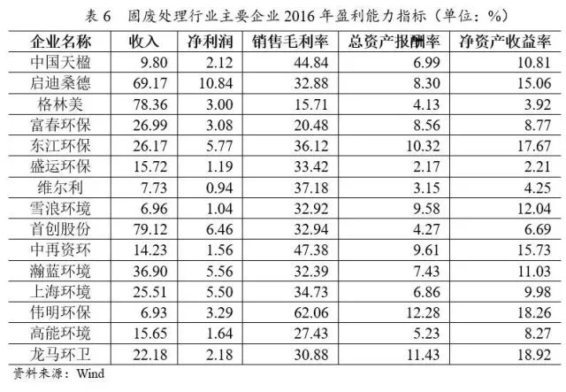 A股上市的固廢處理企業(yè)主要有15家,大部分分布于沿海經(jīng)濟(jì)較發(fā)達(dá)城市。從數(shù)量上來(lái)看,民營(yíng)企業(yè)有9家,占比較高;從凈資產(chǎn)規(guī)模來(lái)看,民企的規(guī)模偏小。從各固廢處理的經(jīng)營(yíng)范圍來(lái)看,這些企業(yè)的營(yíng)業(yè)范圍已經(jīng)覆蓋了固廢各個(gè)子分行業(yè),并且在各個(gè)子行業(yè)內(nèi)不斷延伸產(chǎn)業(yè)鏈條,以垃圾焚燒行業(yè)為例,中國(guó)天楹、雪浪環(huán)境等公司已實(shí)現(xiàn)了項(xiàng)目的工程建設(shè)、環(huán)保設(shè)備的自主生產(chǎn)、垃圾焚燒項(xiàng)目運(yùn)營(yíng)的產(chǎn)業(yè)鏈布局,并且對(duì)于固廢上游的垃圾清運(yùn)拓展。從各公司2016年年報(bào)中披露的發(fā)展戰(zhàn)略來(lái)看,多家公司將環(huán)境治理綜合運(yùn)營(yíng)商作為未來(lái)的發(fā)展戰(zhàn)略,未來(lái)各公司除了深耕原有領(lǐng)域,還會(huì)積極延伸產(chǎn)業(yè)鏈條,豐富業(yè)務(wù)類型。