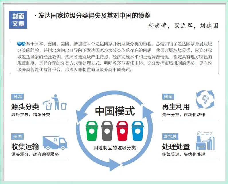 本文亮點(diǎn)在綜述了發(fā)達(dá)國(guó)家垃圾分類開展進(jìn)程的基礎(chǔ)上,分析了不同國(guó)家選擇不同分類方式和處理方式的原因,指出了廢物出口導(dǎo)向下發(fā)達(dá)國(guó)家垃圾分類體系存在的問題,進(jìn)而總結(jié)了我國(guó)需要吸取的經(jīng)驗(yàn)教訓(xùn),為我國(guó)開展垃圾分類提出了建議。內(nèi)容簡(jiǎn)介及結(jié)論近年來,我國(guó)不斷推進(jìn)垃圾分類工作的深入開展,46個(gè)重點(diǎn)城市已逐步建成垃圾...
