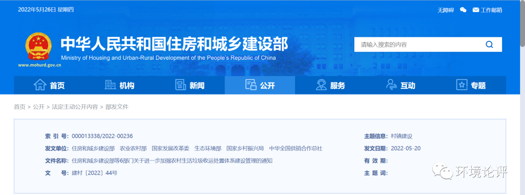 為深入貫徹黨中央、國(guó)務(wù)院關(guān)于實(shí)施鄉(xiāng)村建設(shè)行動(dòng)的決策部署,落實(shí)《農(nóng)村人居環(huán)境整治提升五年行動(dòng)方案(2021—2025年)》明確的目標(biāo)任務(wù),統(tǒng)籌縣鄉(xiāng)村三級(jí)生活垃圾收運(yùn)處置設(shè)施建設(shè)和服務(wù),進(jìn)一步擴(kuò)大農(nóng)村生活垃圾收運(yùn)處置體系覆蓋范圍,提升無害化處理水平,健全長(zhǎng)效管護(hù)機(jī)制,近日,住房和城鄉(xiāng)建設(shè)部等6部門印發(fā)《...