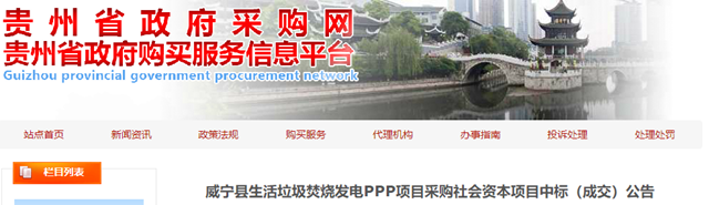 貴州省威寧縣生活垃圾焚燒發(fā)電PPP項(xiàng)目發(fā)布中標(biāo)公告,河南富鑫投資有限公司(牽頭人)、臨安嘉盛環(huán)保有限公司和山東黃河建工有限公司組成的聯(lián)合體成為中標(biāo)的社會(huì)資本方,中標(biāo)金額為60元/噸。 10月26日,該項(xiàng)目發(fā)布招標(biāo)公告,根據(jù)公告顯示,項(xiàng)目所在地位于畢節(jié)市威寧彝族回族苗族自治縣五里崗辦事處,X782道路...