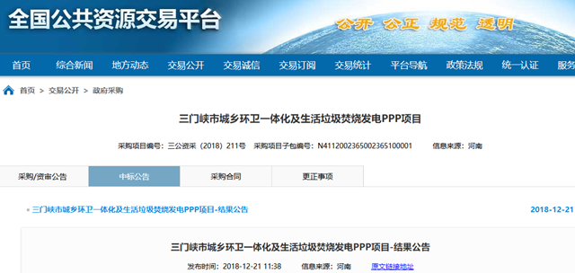 2018年12月21日,河南省三門峽市城鄉(xiāng)環(huán)衛(wèi)一體化及生活垃圾焚燒發(fā)電PPP項(xiàng)目發(fā)布結(jié)果公告,結(jié)果具體如下: 一標(biāo)段預(yù)中標(biāo)社會(huì)資本方: 單位名稱:北京環(huán)境有限公司(牽頭人)、北京中科仁和環(huán)??萍加邢薰?聯(lián)合體成員) 報(bào)價(jià)大寫:壹億零伍佰玖拾捌萬捌仟玖佰玖拾伍元叁角貳分每年 小寫:¥10598899...