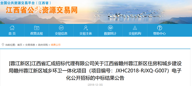 江西贛州城鄉(xiāng)環(huán)衛(wèi)一體化項(xiàng)目:龍馬中聯(lián)獲一二段